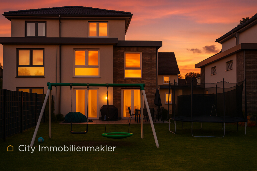 Die Doppelhaushälfte in Langenhagen liegt in einem familienfreundlichen Wohnviertel, das zugleich zentral und sehr gut angebunden ist. Diese Lage vereint naturnahes Wohnen mit optimaler Stadtnähe – ideal für Familien, die Wert auf eine harmonische Umgebung legen.