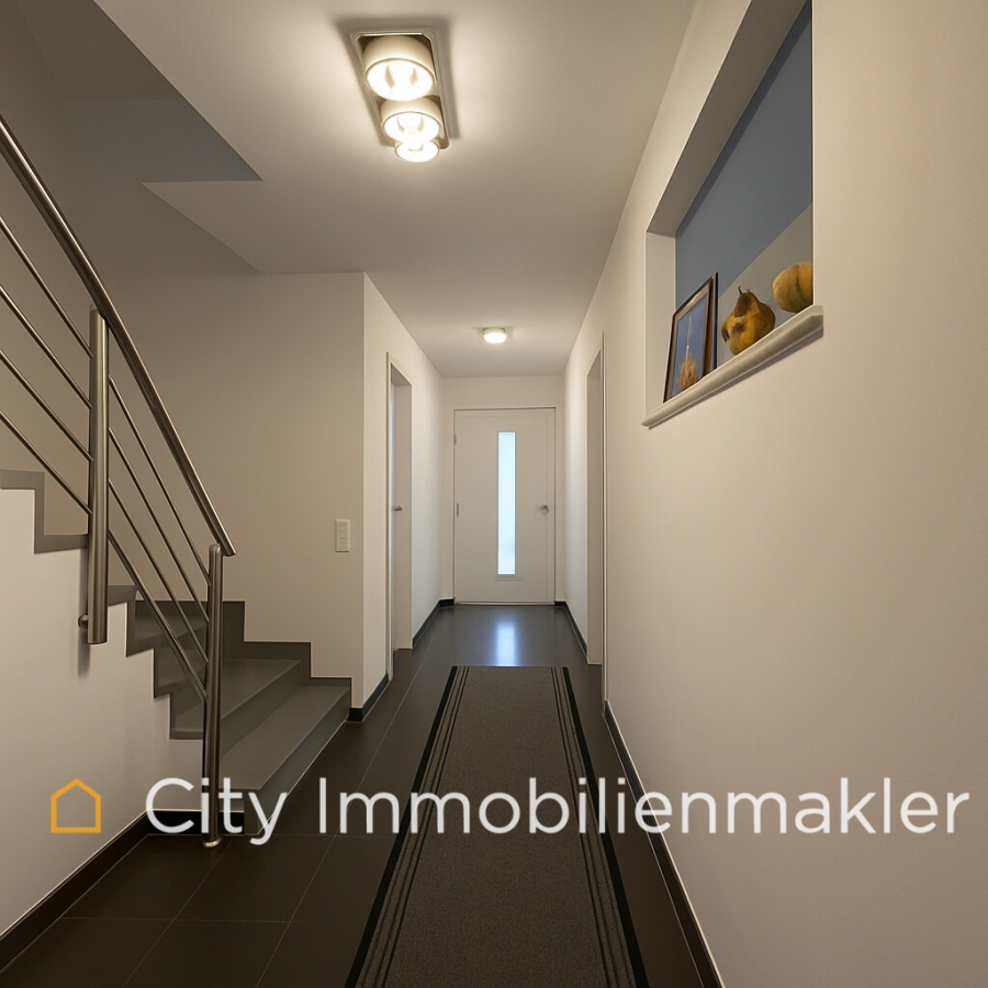 Mit einer hochwertigen Luftwärmepumpe von Stiebel Eltron genießen Sie niedrige Betriebskosten und maximale Unabhängigkeit von fossilen Brennstoffen. Die Fußbodenheizung sorgt auf nahezu allen Etagen für ein angenehm gleichmäßiges Raumklima – perfekt für Familien. Eine zentrale Wohnraumlüftung gewährleistet konstant frische Luft, was besonders Allergikern zugutekommt.
