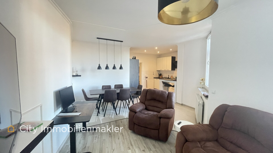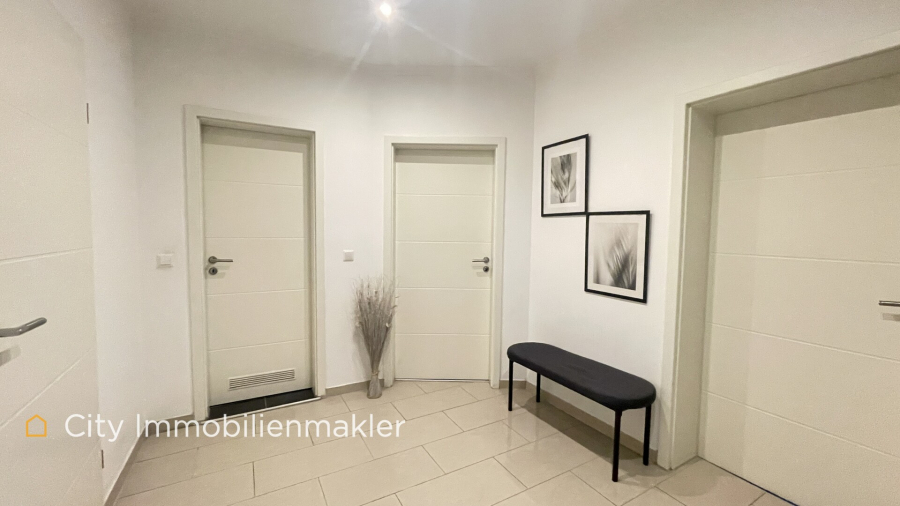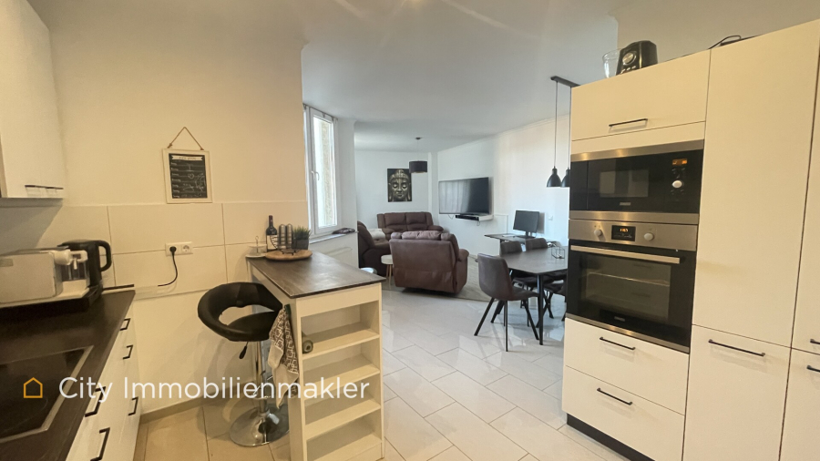 Der Mittelpunkt der Wohnung ist der offen gestaltete Wohn-, Küchen- und Essbereich, der durch seine klare Raumaufteilung und die angenehme Lichtführung überzeugt. Die moderne Einbauküche ist funktional und stilvoll gestaltet und fügt sich harmonisch in den Wohnbereich ein. Die vorhandene Möblierung ist auf das Raumkonzept abgestimmt und ermöglicht einen direkten Einzug ohne zusätzlichen Einrichtungsaufwand.