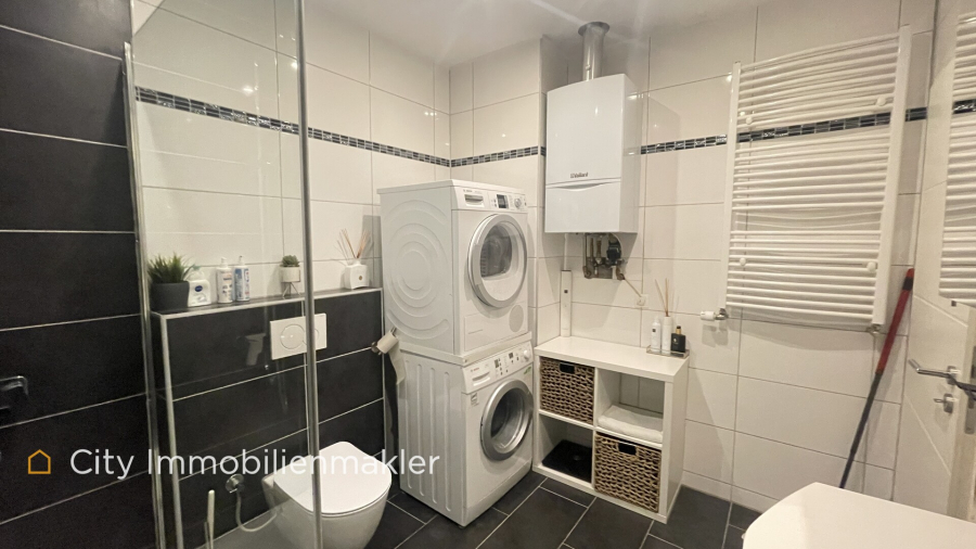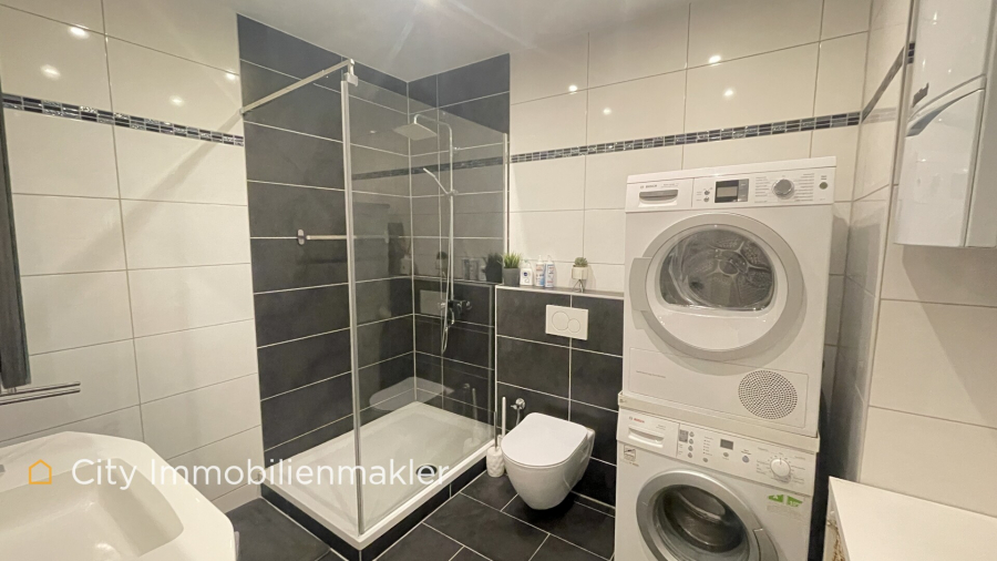 + Bad mit moderner Dusche und Waschmaschinenanschluss