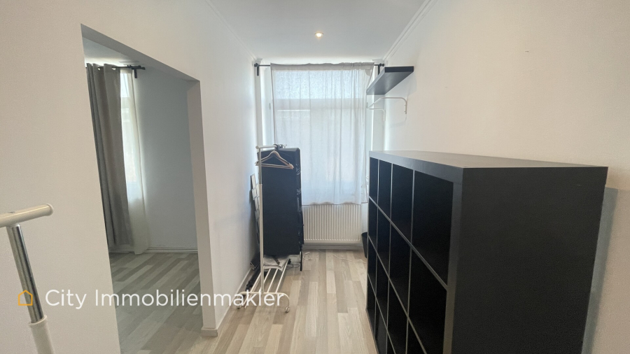Das Schlafzimmer bietet einen ruhigen Rückzugsort und verfügt über ein separates Ankleidezimmer, das zusätzlichen Stauraum und Komfort schafft. Ein weiteres Zimmer eignet sich ideal als Kinder-, Arbeits- oder Gästezimmer und lässt sich flexibel nutzen. Das modern ausgestattete Badezimmer verfügt über eine zeitgemäße Dusche sowie einen Waschmaschinenanschluss.